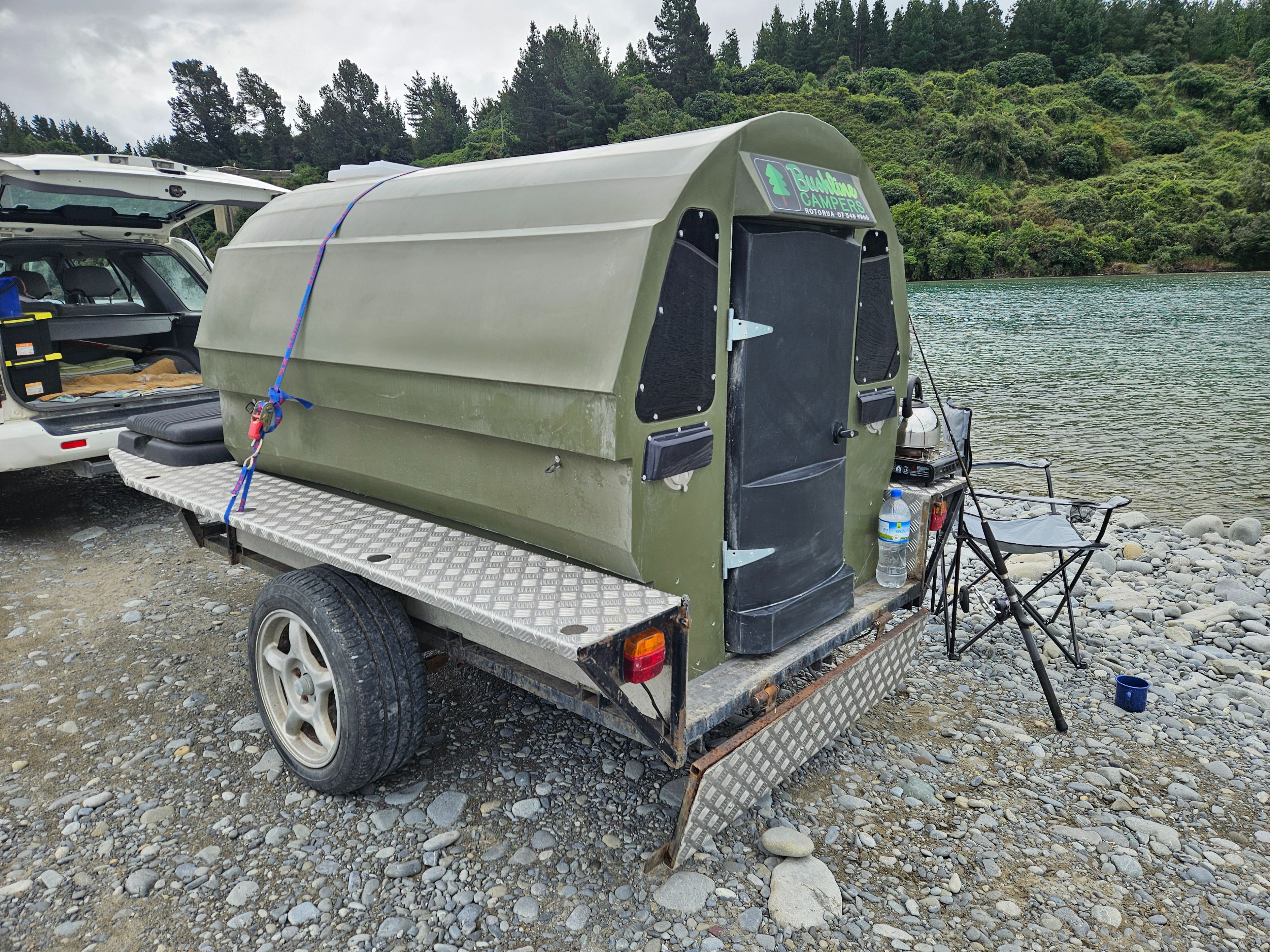 The Bushline Camper is an extremely hardy, simple and cost-effective option as a weatherproof shelter for those hunting, fishing, biking or camping trips. Designed to fit on a standard car trailer or the back of most utes.