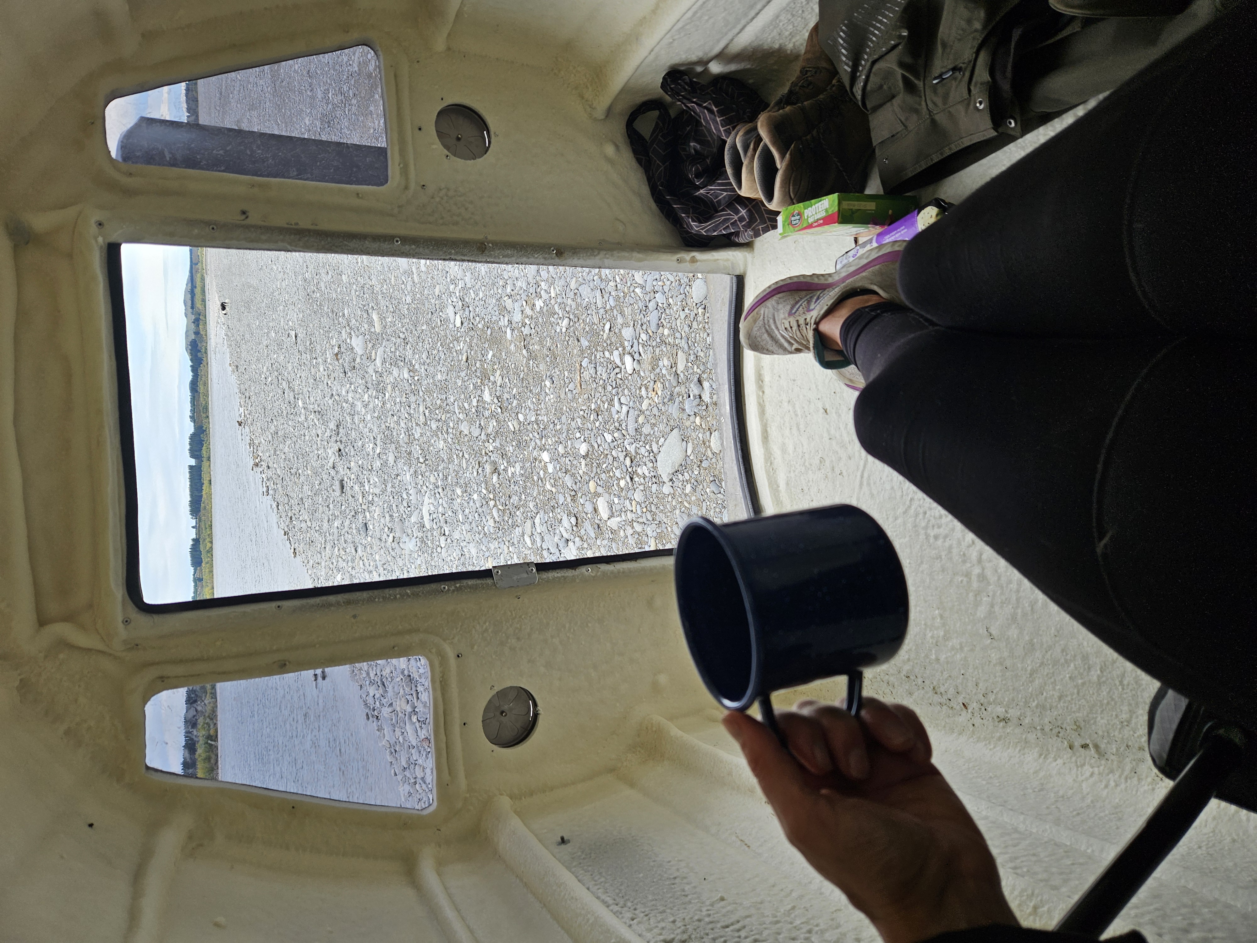 The flat-bottomed pod offers an open space inside that can accommodate your fold-out camping chairs and mattresses to sit and sleep in.